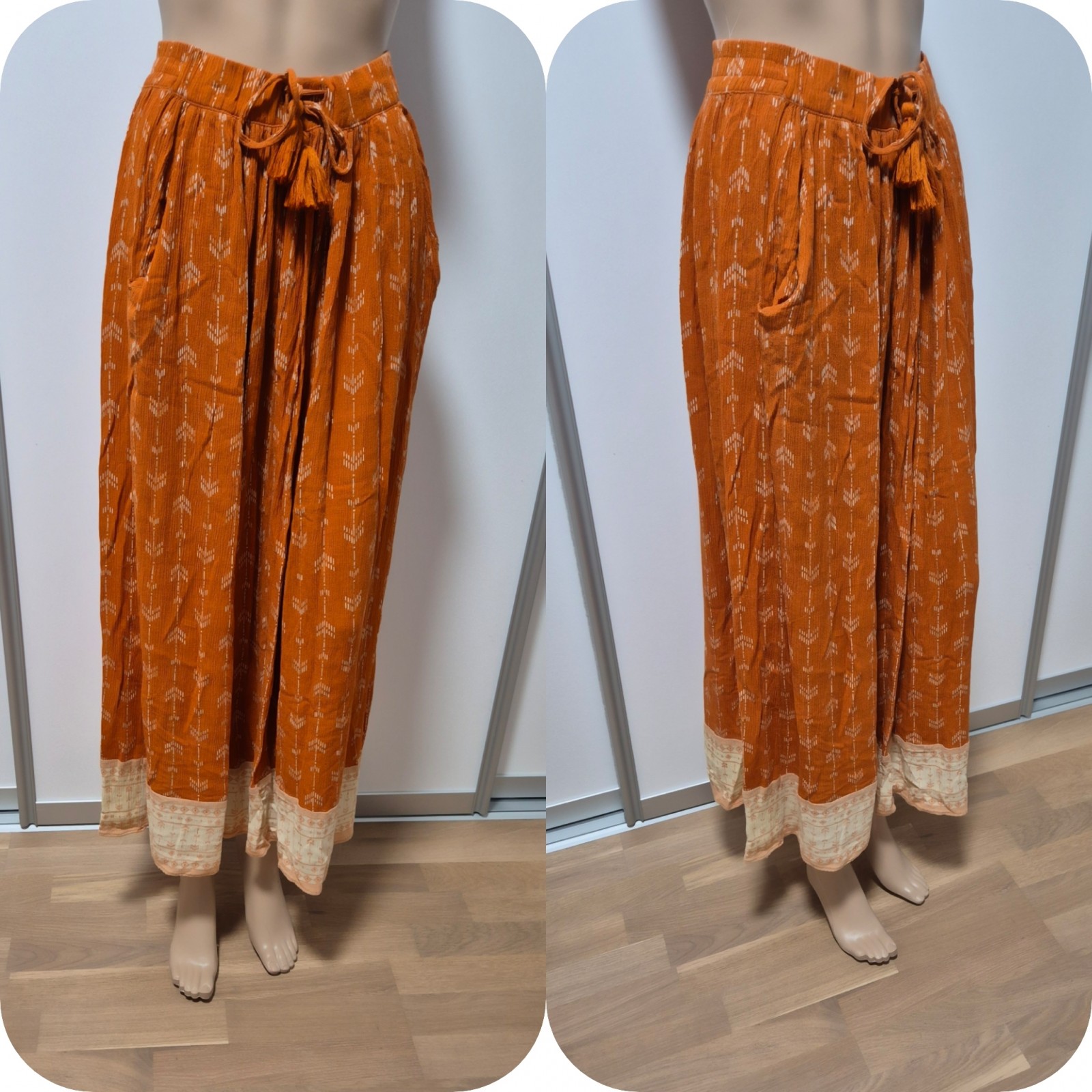 CALLIOPE MAXI krilo št. S. Krilo na prvi pogled daje izgled aladink, vendar gre za lahkotno udobno MAXI krilo. Odlično ohranjeno. Slika malo pokvari izgled v živo je lepše. Ima tudi dva žepa.