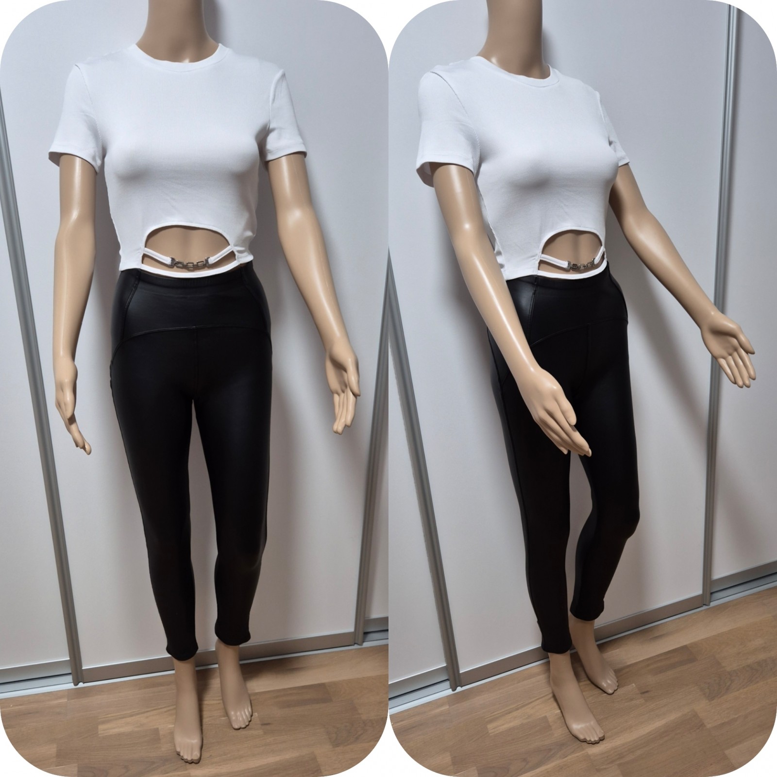 Fishbone bel top kratek rokav št. M. Krajši model, izrez na trebuhu, rebrast elastičen material. Le opran. Lutki je prevelik.