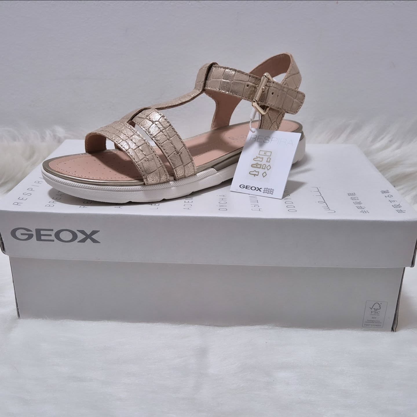 GEOX zlati usnjeni sandali št. 38. Prodajna cena za par je znašala 89.90€. Nerabljeni.
