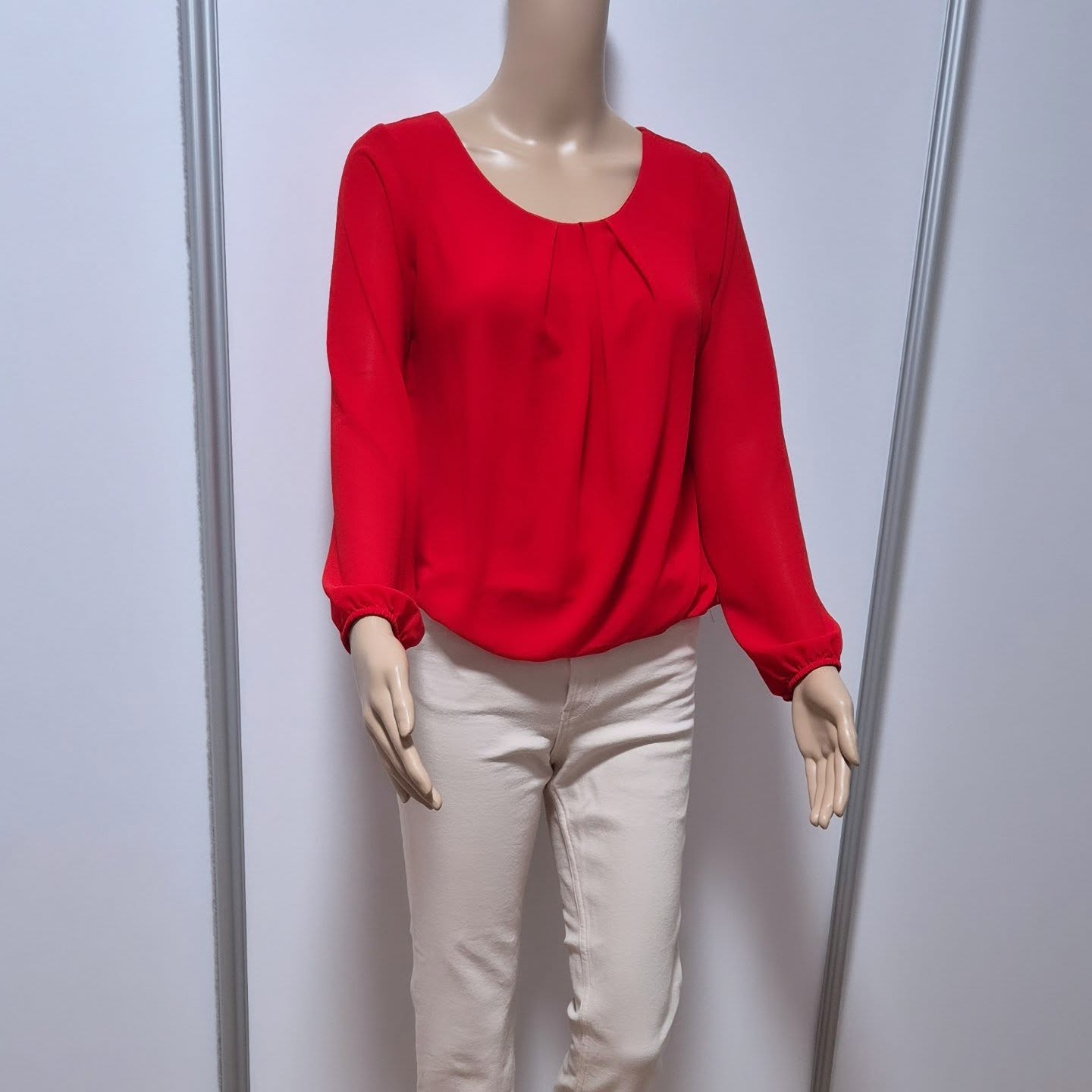 Rdeča bluza št. Uni (XS-M). Ohlapen model, ki se zaključi s patentom. 2-plastna po trupu, rokavi 1-plastni rahlo prosojni. ODLIČNO ohranjena.